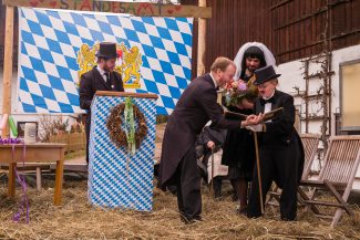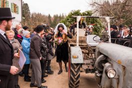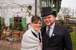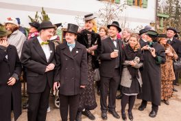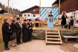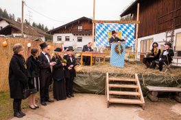 Der Festakt, mit allen gebührenden Ehren vollzogen, war ein Ereignis mit riesiger Strahlkraft, denn nur wenigen dürfte es wohl vorbehalten sein, das Ja-Wort vor so vielen Zeugen zu sprechen, wie diesen beiden. Nicht nur die Hochzeitsgesellschaft verfolgte die Zeremonie, sondern auch eine stattliche Zahl an Zaungästen war gekommen, um zu sehen, ob beide ihr Kreuz als Unterschrift auf den „Zsammakemmavertrag“ setzen würden. Der Bräutigam kann sich nun glücklich schätzen, hat er doch die Gewissheit: “Du hast mich nun gefangen, Herzallerscheuslichst mein, an Dir werd’ ich nun hangen mit Grauen und mit Pein, ………“