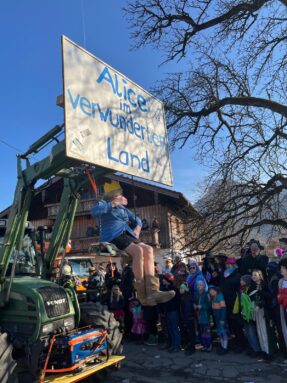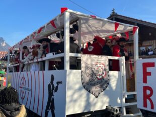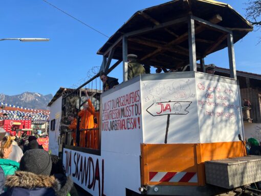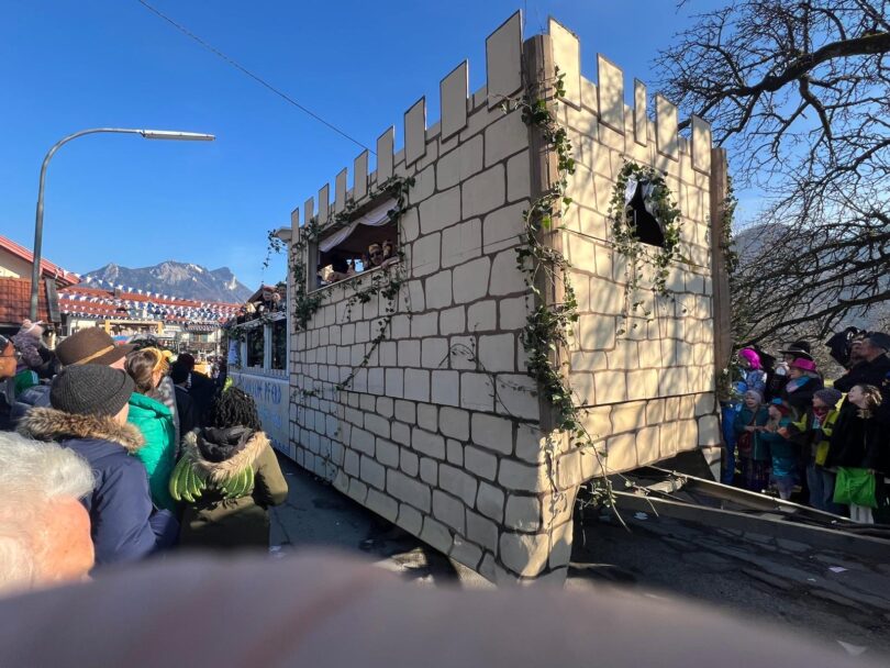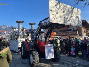 Nicht nur die arg ins Rutschen gekommene Burg Falkenstein, sondern auch viele weitere Begebenheiten in der Gemeinde Flintsbach im Inntal waren willkommene Themen beim heurigen Faschingszug.