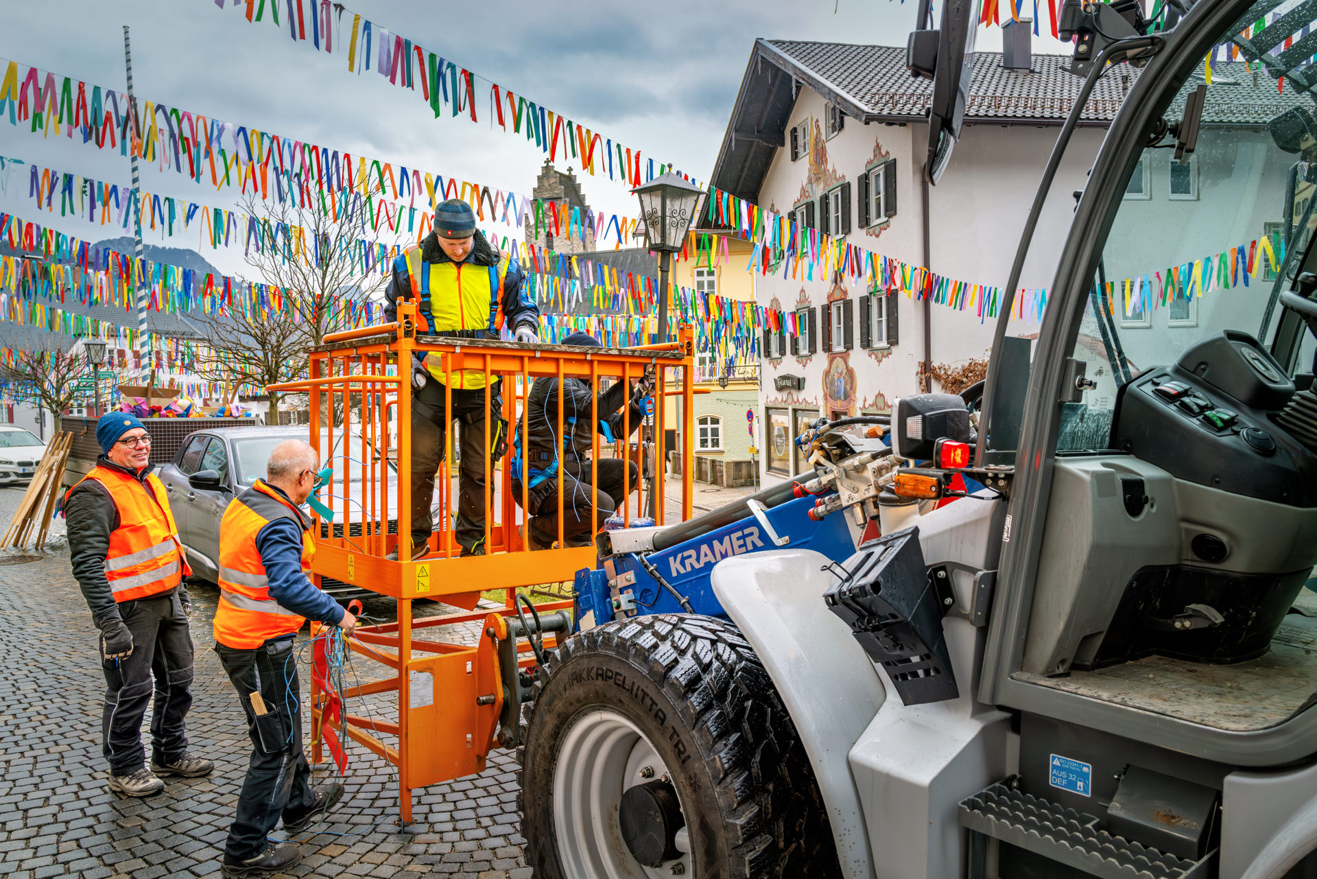 Neubeuern ist bereit: Bauhof spannt das bunte „Bändermeer“ über den Marktplatz