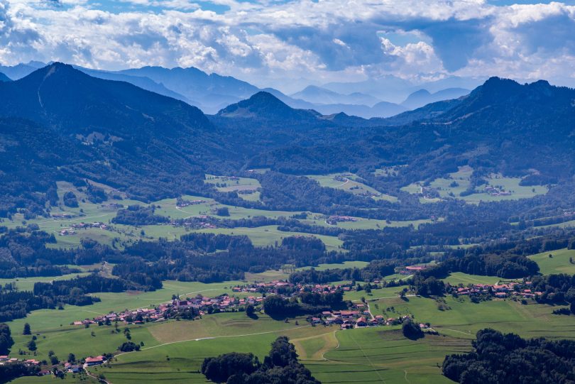 Foto: Luftbild Rainer Nitzsche mit Blick über Samerberg in die Bergwelt