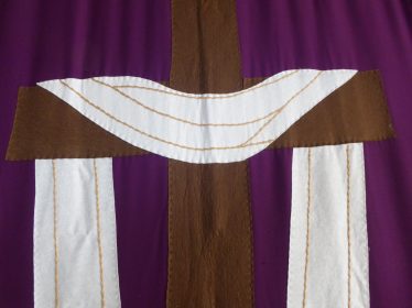 Im Gegensatz zu manch anderen reich bebilderten Tüchern sind die Haibühler Tücher in schlichtem Violett mit biblischen Motiven versehen. Lila gilt als die Farbe der Buße, der Umkehr. Diese Farbe setzt sich zusammen aus Rot und Blau. In der altkirchlichen Symbolik ist Rot die Farbe des Irdischen und Blau die Farbe des Himmlischen. Dies ist oftmals gut in Darstellungen von Maria, der Mutter Jesu, zu beobachten: Sie wird oft gemalt in einem roten Kleid (das symbolisiert ihr Menschsein) und einem blauen Überwurf (sie wird gleichsam mit himmlischer Natur überkleidet). Bei der Buße und Umkehr geht es darum, dass sich Himmel und Erde berühren, ja durchdringen. Wir breiten unser Leben vor Gott aus, lassen uns auf ihn ein, lassen ihn in unser Leben ein.