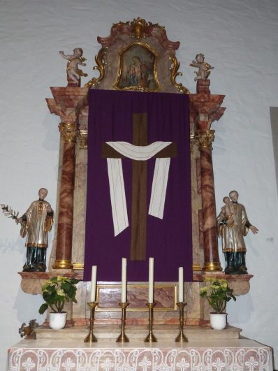 Mehr als ein alter und traditioneller Brauch sind die großen violetten Fastentücher in der Pfarrkirche St. Wolfgang in Haibühl. Drei überdimensionale Vorhänge verhüllen den Haupt- und die beiden Seitenaltäre. Am Aschermittwoch aufgehängt, werden die Fastentücher (auch Hungertuch oder „velum templi“, Vorhang des Tempels, genannt) erst am Karsamstag wieder entfernt. Diese rund sechswöchige praktizierte Verhüllung von Kreuzen, Figuren und Bildern (vor allem Darstellungen des auferstandenen, im Himmel thronenden Christus) in der Kirche lässt sich auch heute noch als „Augenfasten“ deuten. Es lenkt die Aufmerksamkeit auf das Wesentliche des Glaubens.