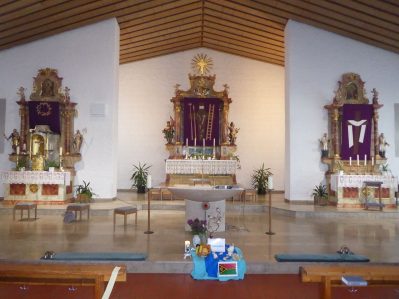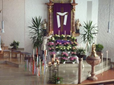 Bis vor der Liturgie am Gründonnerstag können die Fastentücher für Gebet und Andacht während der Öffnungszeiten der Pfarrkirche besucht werden. Gebetsvorlagen für die Karwoche und Ostern sowie von Ostern zuhause liegen als Anregungen am Schriftenstand auf. Pfarrer Johann Wutz möchte aber auch dazu anregen, im Gotteslob auf Schatzsuche zu gehen, das Inhaltsverzeichnis zu lesen, einfach durchzublättern und bei Gebeten, Liedern und Andachten innezuhalten, die einem persönlich ansprechen. „Schon allein dadurch bewegen wir uns im Raum des Gebets und in der Gegenwart Gottes“, so der Geistliche.