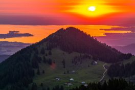 Fünf Uhr morgens am Fronleichnamstag auf der Hochries: wer da schon auf und vor Ort ist und wer das Glück mit dem Wetter hat, der kann sich an faszinierenden Sonnenaufgangs-Bildern erfreuen. So wie diese dem Fotografen Rainer Nitzsche gelangen, sie zeigen hoch droben auf dem Rosenheimer Hausberg Ausblicke hinein ins Chiemsee-Alpenland mit der aufgehenden Sonne über dem Bayerischen Meer und andererseits hinein ins Tiroler Kaisergebirge.
