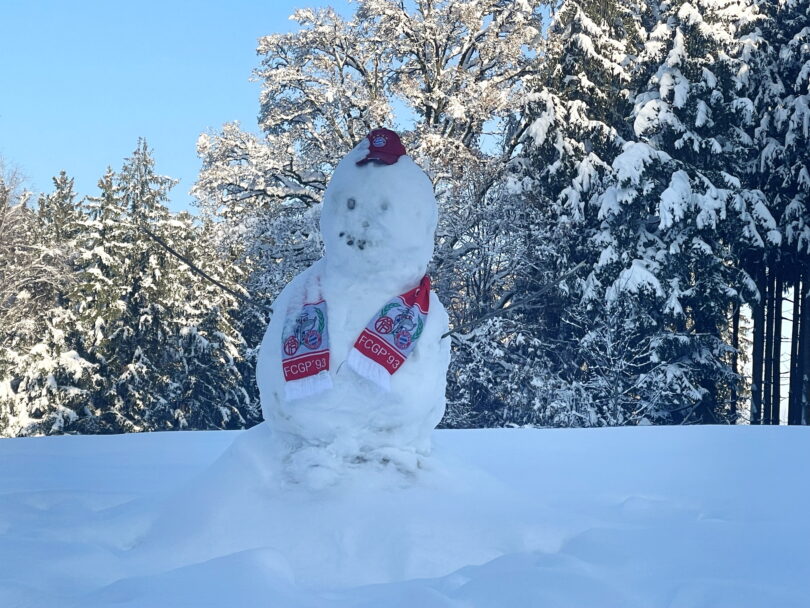 “Wenn die Bayernstars wegen des Winterwetters nicht zu den Fan-Clubs kommen konnten, so konnte der Schnee zumindest erlauben, einen FC-Bayern-Schneemann entstehen zu lassen” – so die Botschaft der Gaishackener Bayernfans.