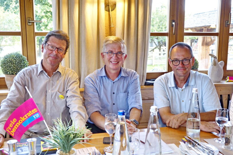 Bericht und Foto: Georg Resch und Heinz Hilgendorf – Von links, hinter dem Fähnchen Dr. Jörg Buse, Mitte Prof. Dr. Andrew Ullmann MdB, rechts Dirk PeschutterVon links, hinter dem Fähnchen Dr. Jörg Buse, Mitte Prof. Dr. Andrew Ullmann MdB, rechts Dirk Peschutter