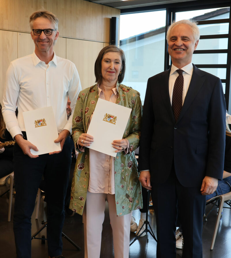 Schulleiterin Claudia Romer (mitte) mit ihrem Nachfolger Gerhart Zimmermann (links) und Regierungspräsident Dr. Konrad Schober (rechts). Foto: Landratsamt Rosenheim.