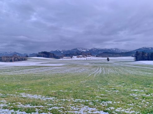 Ein bisschen Winter und doch ein wenig grün – so zeigte sich kurz vor dem Jahreswechsel die ansonsten für Ski-Langlauf prädestinierte Gegend im Westen der Marktgemeinde Prien rund um den Ort Atzing. Wie diese aktuellen Bilder mit Blick von Mupferting über Elperting in die Chiemgauer Bergwelt sowie von Arbing Richtung Munzing zeigen, zeigt sich dieser Teil des Chiemgaus zum Jahresende echt stilvoll und gegebenfalls auch als Vorlage für Landschaftsmaler.