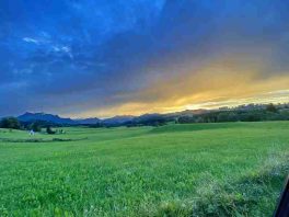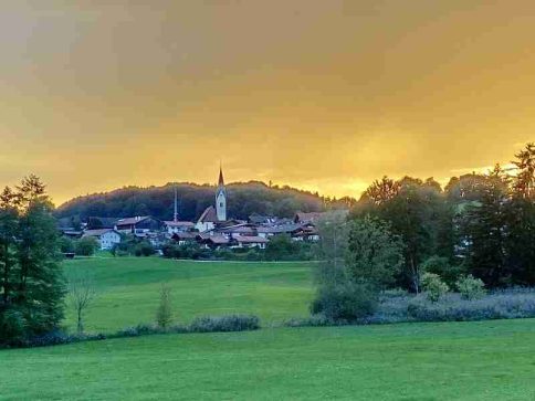 Ganz und gar besondere Stimmungen zeigte das Hochtal Samerberg am Eingang zum Wochenende. Wie diese aktuellen Aufnahmen von den Gemeindeteilen Törwang, Grainbach und Bichl zeigen, präsentierte sich der Himmel über dem Samerberg faszinierend gelb-golden-blau.