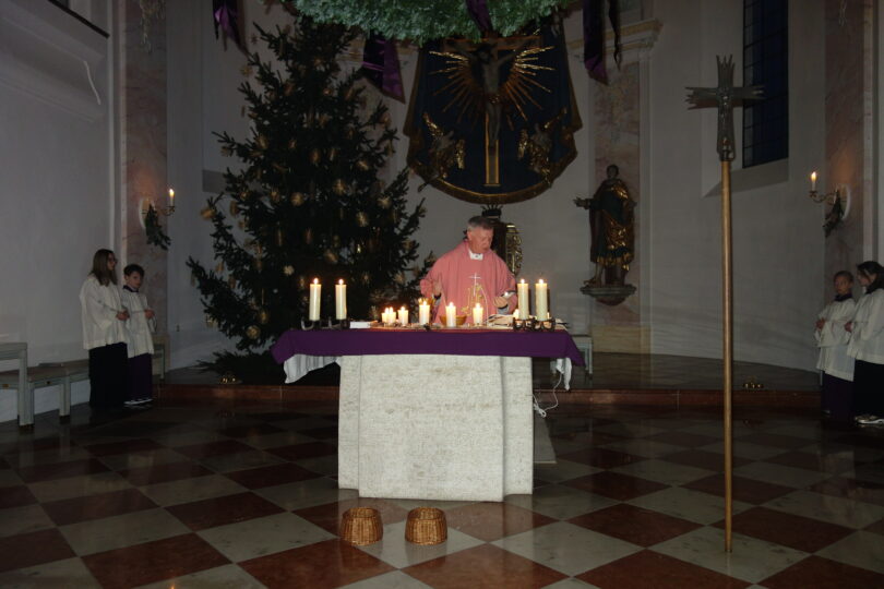 Advent sei eine Zeit der Ankunft, eine Zeit der Wachsamkeit, sagte Pfarrer Martin Straßer beim Rorate in der nur vom Schein der Kerzen erhellten Reit im Winkler Pfarrkirche St. Pankratius. Der zu Beginn gebetete Engel des Herrn sei „ein Zeichen, dass wir nicht allein sind, sondern von der Liebe Gottes getragen“.