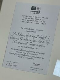 Heute fand im Kaisersaal der Residenz München die feierliche Übergabe der UNESCO-Welterbeurkunde für die Schlösser König Ludwigs II. von Bayern statt. Die Welterbestätte umfasst Neuschwanstein, Linderhof, Schachen und Herrenchiemsee.