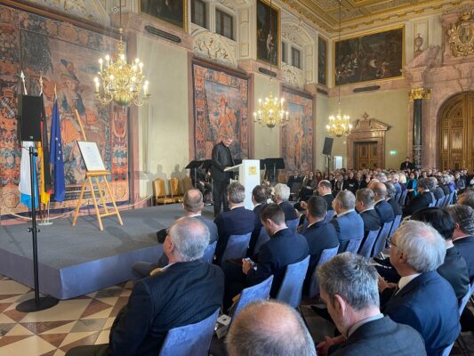 Nach der Begrüßung durch Finanz- und Heimatminister Albert Füracker sprachen unter anderem Ministerpräsident Dr. Markus Söder, Wissenschaftsminister Markus Blume sowie Staatsminister Florian Hahn. Höhepunkt der Veranstaltung war die offizielle Übergabe der Urkunde an den Bayerischen Ministerpräsidenten. Musikalische Beiträge und ein anschließender Staatsempfang umrahmten den Festakt. Anbei erste Bilder. Weitere Bilder und ein ausführlicher Bericht folgen.