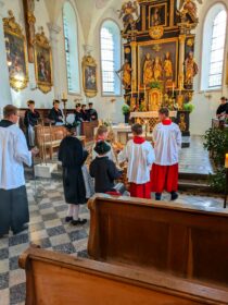 In der stimmungsvoll herbstlich geschmückten Wallfahrtskirche St. Salvator wird traditionell am dritten Sonntag im September das Erntedankfest gefeiert. Auch in diesem Jahr fand zu diesem Anlass ein feierlicher Gottesdienst statt, an dem neben den Mitgliedern der Kreuztracht St. Salvator die Trachtenvereine “Daxenwinkler” Atzing und “Ratzingerhöhe” Greimharting teilnahmen. Musikalisch wurde die Feier vom Chiemseewinkel-Dreigsang begleitet.