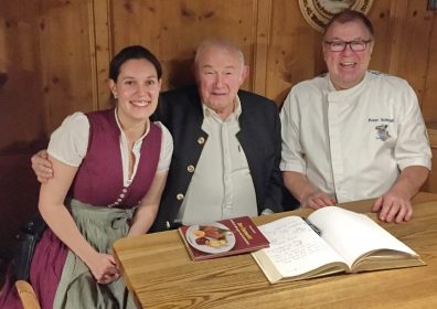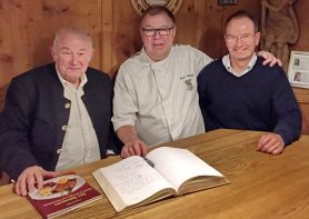 Gut besucht waren die Samerberger Gastronomie-Betriebe an den Weihnachtsfeiertagen und zur Weihnachtsferienzeit. Unter den Gästen befand sich auch Bayerns vormaliger Ministerpräsident Günter Beckstein. Er besuchte zum wiederholten Male mit seiner Familie den Entenwirt in Törwang. Zum Dank für den Besuch übergaben Kathi und Peter Schrödl an Günter Beckstein das im Rosenheimer Verlag erschienene Buch „Der Entenwirt“.