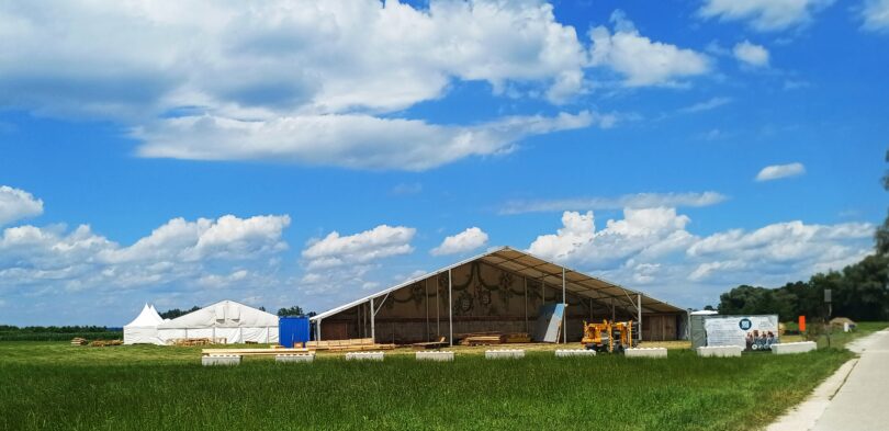 Bericht und Foto: Christiane Giesen – In bezaubernder Landschaft im Ortsteil Luft in Übersee ist das riesige Festzelt für das 87. Gaufest des Chiemgau Alpenverbands inzwischen fertig aufgebaut.