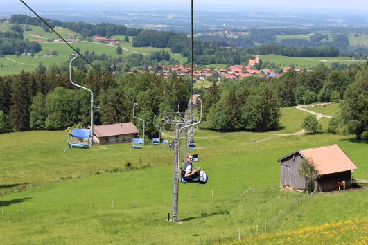 Nach umfangreichen Modernisierungsarbeiten läuft die Kabinenbahn der Hochriesbahn nun seit Ende Mai wieder täglich. Mit einer neuen elektronischen Steuerung und einem neuen Haupt- und Notantrieb wurde die Bahn auf den aktuellen Stand der Technik gebracht. So fährt sie seine Gäste in 5-6 Minuten zur Bergstation auf die Hochries – knapp unter dem 1569 Meter hohem Gipfel. Dort lässt es sich in der renovierten Alpenvereins-Hochrieshütte hervorragend verweilen und verschiedene selbstgemachte Schmankerl genießen.