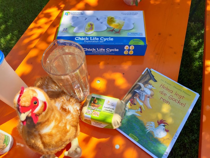 Besondere Freude bereitet den Kindern das Hühner füttern, streicheln und kuscheln. Sehen wo die Eier herkommen, mit den Katzen spielen und zu den Hasen in den Auslauf steigen. Nebenbei erklärt Maria Riepertinger den Kindern die Kennzeichnung von Eiern und den Lebenszyklus eines Huhns.