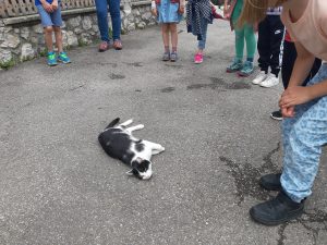 Selbst die Hofkatze Bertl freut sich über den Besuch der Ferienbetreuung.