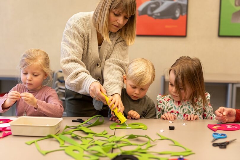 In den Familienworkshops können sich Groß und Klein kreativ austoben. Diese finden während den Ferien am Montag, Mittwoch, Freitag und Samstag jeweils um 12 Uhr statt. Mitmachen ist hier ausdrücklich erwünscht. Hier werden coole Masken gebastelt, es entstehen superstarke Pappfiguren oder es werden heldenhafte Figuren im Hosentaschenformat gestaltet. Das Programm wechselt regelmäßig und ist für Kinder ab 7 Jahren geeignet. Auch jüngere Kinder sind willkommen, sollten dann aber in Begleitung der Eltern sein.