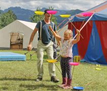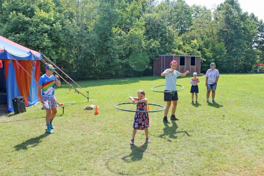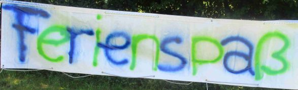 Trotz teilweise verregnetem Wetter in der ersten Woche hatten die Kinder bei den unterschiedlichsten Aktivitäten viel Spaß: neben den Bastel-, Spiel- und Sportangeboten in den Kleingruppen gab es am Mittwochnachmittag den Wettkampf „Klein gegen Groß“ (angelehnt an das bekannte Fernsehformat), bei dem die Kinder gegen ihre Gruppenleitungen in den unterschiedlichsten Disziplinen wie Sackhüpfen, Staffellauf, Hula-Hoop-Reifen drehen oder Diabolo antraten und natürlich meist gewinnen konnten. Als Abschluss der ersten Woche fand am Freitagnachmittag eine Zirkusvorstellung statt, bei der die Kinder ihre einstudierten akrobatischen Höchstleistungen zeigen konnten. In der zweiten Woche sorgte viel Sonnenschein für wärmere Temperaturen. Nun konnte endlich mit der heiß ersehnten Schnitzeljagd gestartet werden, die die Gruppen über den Zeltplatz und in den nahen Wald führte. Am Ende der zweiten Woche gab es noch eine Großveranstaltung, bei der jede Kleingruppe verschiedene Spielchen bewältigen musste, die von Einzeldarbietungen einzelner Kinder umrahmt wurden.
