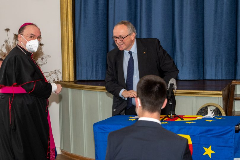 Bei der anschließenden Versammlung zur Unterstützung der freiheitlichen, ökologischen und sozialen Demokratie Europas im weltweiten Wettbewerb der Systeme sprachen neben Bischof Bertram Meier und Michael Gahler MdEP der Bundestagsabgeordnete Volker Ullrich MdB, Mitglied des Europa-Ausschusses im Deutschen Bundestag und der Parlamentarischen Versammlung des Europarates, sowie der Medienanwalt Dirk Hermann Voß, Vizepräsident der internationalen Paneuropa-Union.