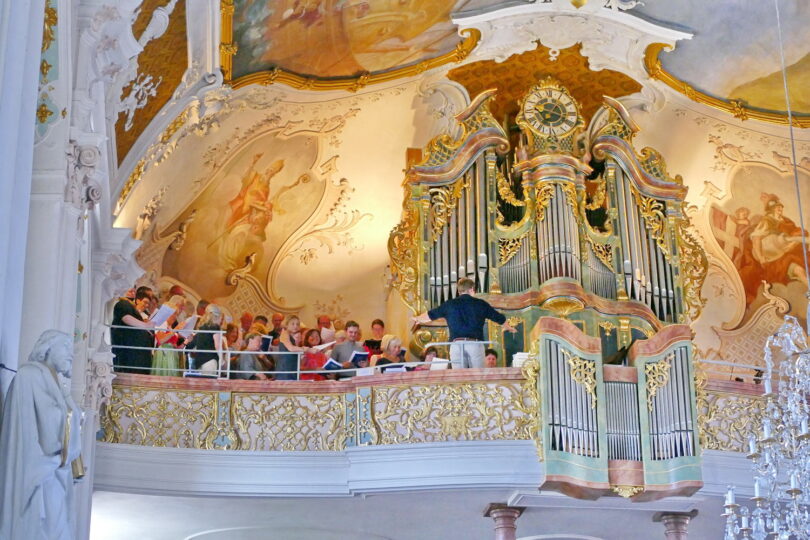 In seiner Predigt wies Pater Zollner auf die Bedeutung der Marienverehrung im Chiemgau und darüber hinaus hin. „In ihrem Leben mit den vielen Herausforderungen lebte Maria die drei B´s: nämlich die Begegnung, das Bereit-sein und das Beten“ – so der Pater. Am Gottesdienst nahmen auch drei in schwarzen Gewändern gekleidete Mitglieder des Ordens vom „Ritter des Heiligen Lazarus zu Jerusalem“ teil. Die musikalische Gestaltung übernahmen Chorgemeinschaft, Solisten und Orchester „Mariä Himmelfahrt“ unter der Leitung von Kirchenmusiker Bartholomäus Prankl. Zur Aufführung kam Mozarts “Spatzenmesse” KV 220 und die Epistelsonate KV 263. Zudem erklangen Liedsätze für Chor und Orchester mit Bernhard Loss an der Orgel.
