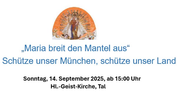 Bereits zur guten Tradition geworden ist das Festkonzert des Festring München e.V., das jeweils eine Woche vor Wiesnbeginn stattfindet. In diesem Jahr erklingen am Sonntag, 14. September 2025, ab 15 Uhr in der Hl.-Geist-Kirche im Tal unter dem Leitgedanken „Maria breit den Mantel aus – Schütze unser München, schütze unser Land“ festliche Klänge.