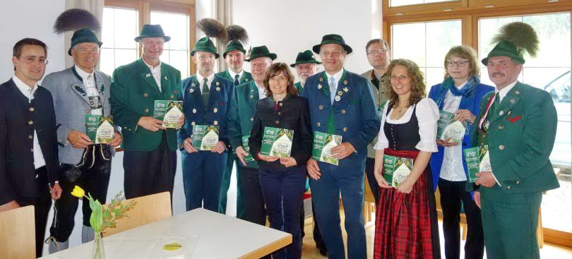 Fotos: Hötzelsperger – Bei der Festschriftvorstellung im Vereinshaus von Atzing – von links: Michael Rieder, Peter Holzner, 1. Bgm. Jürgen Seifert, Verfasser Albert Rauch, Festleiter Michael Schlosser, 2. Bgm. Hans-Jürgen Schuster, Andrea Hübner (PriMa), 3. Bgm. Alfred Schelhas, Gauvorstand Miche Huber, Fotograf Rainer Nitzsche, Tina Pfaffinger (TV Chiemsee-Alpenland), Ida Brömse (Partnerschaftsreferentin) und Vorstand Anton Hötzelsperger (es fehlt Fotografin Anita Berger).