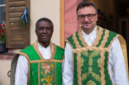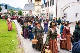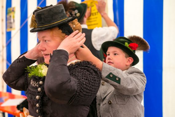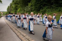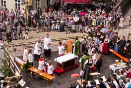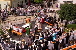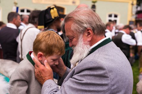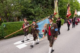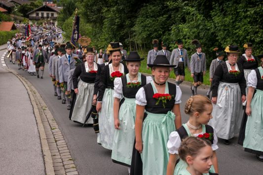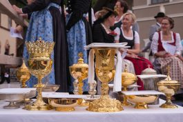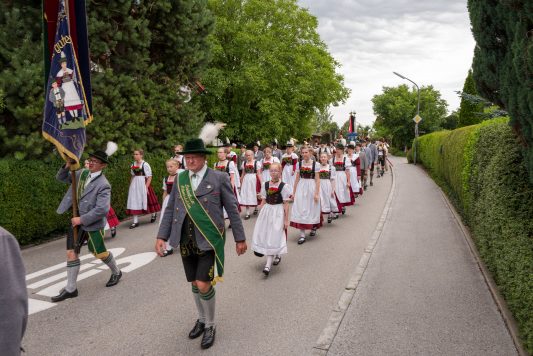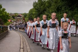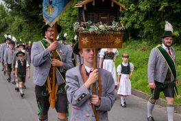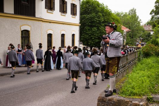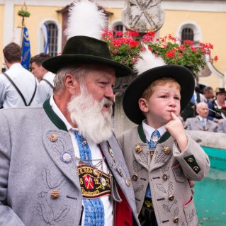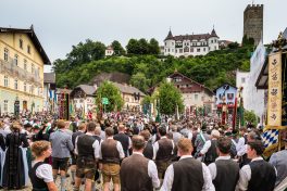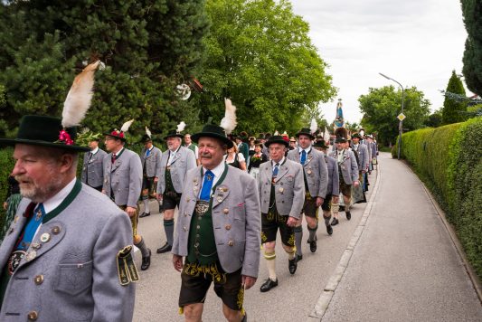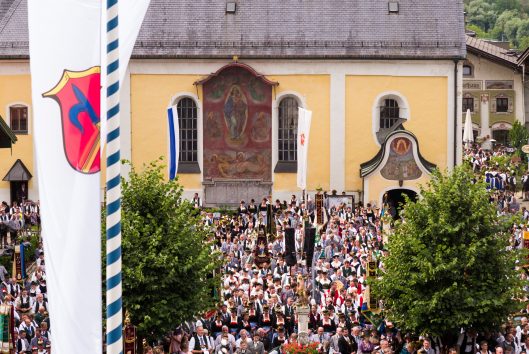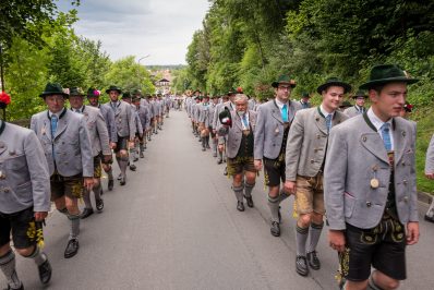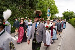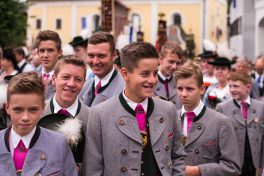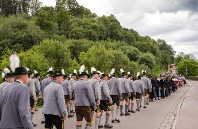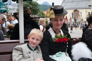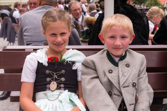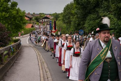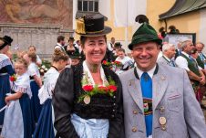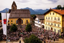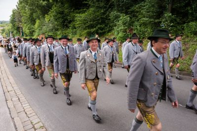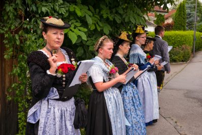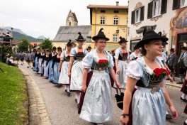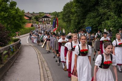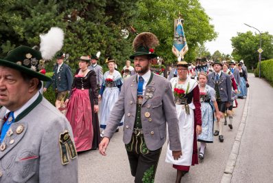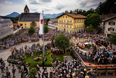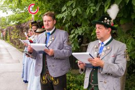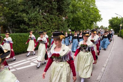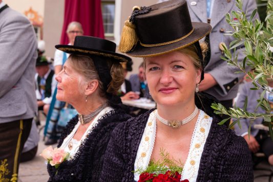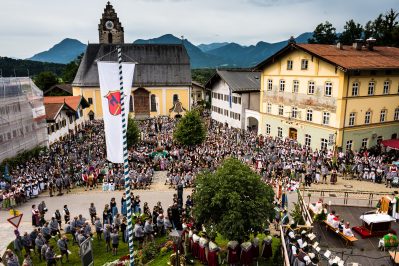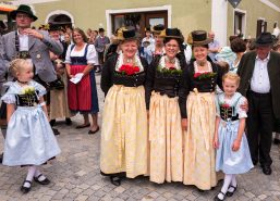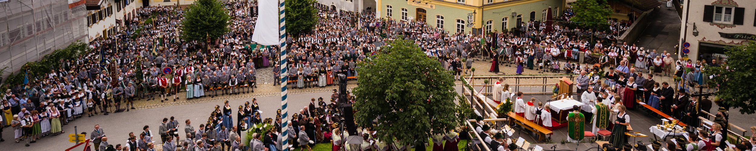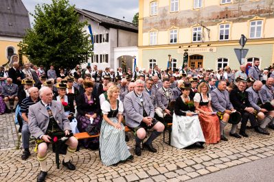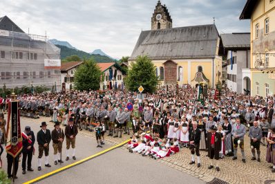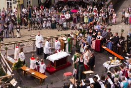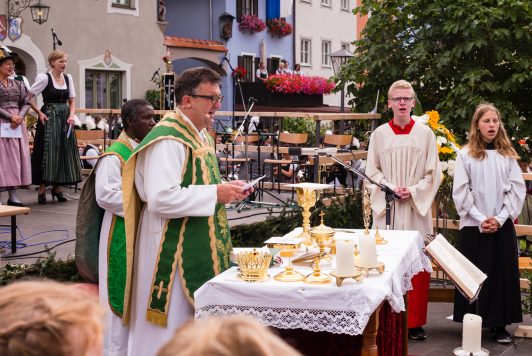 Die innige Verbundenheit von Gott und den Menschen, die angesichts der vielen Trachtlerinnen und Trachtler in ihrem wertvollen Gewand Landesvorsitzender Max Bertl beim Gauheimatabend des Bayerischen Inngau-Trachtenverbandes im Festzelt lobte, zeigte sich tags darauf in besonders deutlicher Weise, als sich die Trachtler, Fahnenabordnungen und Blasmusikanten zum Gottesdienst auf dem malerischen Marktplatz unter freiem Himmel einfanden. Den Gottesdienst zelebrierten gemeinsamen Pfarrer Christoph Rudolph und Pfarrer Dr. Dariaus Magunda aus Uganda von der Pfarrei Neubeuern, die musikalische Gestaltung unter der Gesamtleitung von Pia Hausner besorgten der Kirchenchor Neubeuern und Bläser der Musikkapelle Neubeuern mit der Primiz-Messe.