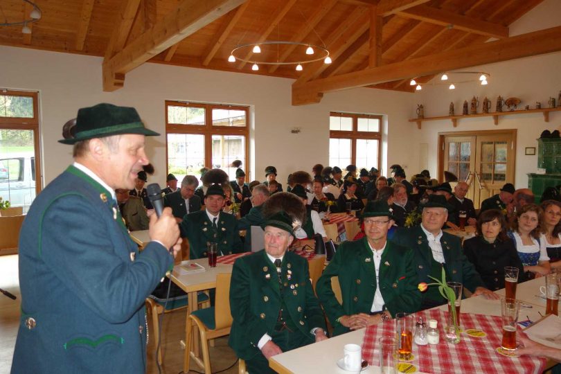 Nach einer musikalischen Einstimmung durch die „Liabeberg-Musi“ informierten Festleiter Michael Schlosser junior und Vorstand Anton Hötzelsperger über den aktuellen Stand der Vorbereitungen. Derzeit wird von Atzinger Trachtenfrauen an verschiedenen Abenden das Festzeichen in Form eines Hirschhornknopfes fertig gemacht. Dieses Festzeichen stellte Gerhard Fischer als Vereinshaus-Nachbar vor, es wurde in einem aufwendigen Verfahren hergestellt und es soll auch nach dem Festsonntag noch für einen trachtlerischen Schmuck weiter verwendet werden können. Als Termine wurden bekannt gegeben am Dienstag, 2. Mai und Dienstag, 9. Mai zwei Volkstanzkursabende mit dem Chiemgauer Tanzwart Otto Zaiser jeweils ab 20 Uhr im Atzinger Vereinshaus, am 31. Mai eine Abstimmungs-Versammlung mit der Vorstandschaft vom Chiemgau-Alpenverband, am 27. Juni eine Zusammenkunft der Festzeichenverkäufer und am Freitag, 14. Juli ist Zeltaufbaubeginn auf dem bereits jetzt voll erschlossenen Festplatz neben dem Vereinshaus. Gauvorstand Miche Huber vom Chiemgau-Alpenverband würdigte die Atzinger Trachtler zu Beginn der heißen Vorbereitungsphase als Wahrer des Brauchtums, die den Grundgedanken der Vereinsgründung vor 120 Jahren auch in einer schnell-lebigen und von Wandel geprägten Zeit zu erhalten wissen. „Euer Tun schafft Heimatbewußtsein, Identität, Halt und Orientierung und das nicht nur für die Alten, sondern vor allem auch für die Jungen“, so der Gauvorstand. Nach diesen Worten nahm er für die beiden Atzinger Trachtenfrauen Maria Höhensteiger und Anni Krauß die Ehrung für deren 40jähriges aktives Dabeisein mit einem Ehrenzeichen des Gauverbandes vor. Bürgermeister und Schirmherr Jürgen Seifert versicherte im Beisein seiner Stellvertreter Jürgen Schuster und Alfred Schelhas den Atzinger Trachtlern die gemeindliche Unterstützung, so dass auch das Atzinger Gaufest wie schon vor zwei Jahren das Priener Gaufest und wiederum zwei Jahre zuvor das Wildenwarter Gaufest zu einem ganz besonderen Festerlebnis führen wird. Geschäftsführerin Tina Pfaffinger vom Tourismusverband Chiemsee-Alpenland, ebenso Ehrengast wie Geschäftsführerin Andrea Hübner von der PrienMarketing GmbH, wie Priens Partnerschaftsreferentin Ida Brömse und Priens Ehrenbürger Michael Anner dankte dem Trachtenverein Atzing für dessen Aktivitäten im heurigen „Trachtensommer“ mit drei Gaufesten im Landkreis Rosenheim. „Als Tourismusorganisation unterstützen wir die Gaufeste gerne, denn sie sind für unsere Urlauber ein echtes und unverfälschtes Erlebnis und darüber hinaus auch ein Kulturgut und bedeutender Wirtschaftsfaktor, denn Untersuchungen zufolge werden durch die drei Gaufeste fast eine Million Euro Ausgaben von den Besuchern zu erwarten sein“ – so Christina Pfaffinger. Von einer „Pfundigen Sache“ sprach Geschäftsführer Peter Holzner von der Volksbank Raiffeisenbank in Prien. Er überreichte an Festleiter Michael Schlosser und Vorstand Anton Hötzelsperger symbolisch drei 500-Euro-Scheine zur Finanzierung der Leistungen in der Vorbereitungsphase (von der Vorstellung der Festschrift berichten wir noch gesondert).