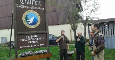 Im Rahmen der Vorbereitungen auf das in knapp 100 Tagen beginnende 81. Gautrachtenfest des Chiemgau-Alpenverbandes veranstaltet der Trachtenverein „Daxenwinkler“ Atzing am Sonntag, 23. April eine Festversammlung. Diese sieht nach dem um 8.30 Uhr in St. Salvator beginnenden Patroziniums-Gottesdienst ab 10 Uhr im Vereinshaus die Vorstellung der Festschrift und des Festzeichens, Ehrungen durch Gauvorstand Miche Huber sowie weitere Abstimmungen zum Gaufest. Zu dieser Versammlung sind nicht nur die Ehrenmitglieder, Mitglieder und Aktiven, sondern auch Leute willkommen, die sich im Rahmen der Gaufest-Aufgaben einbringen wollen.