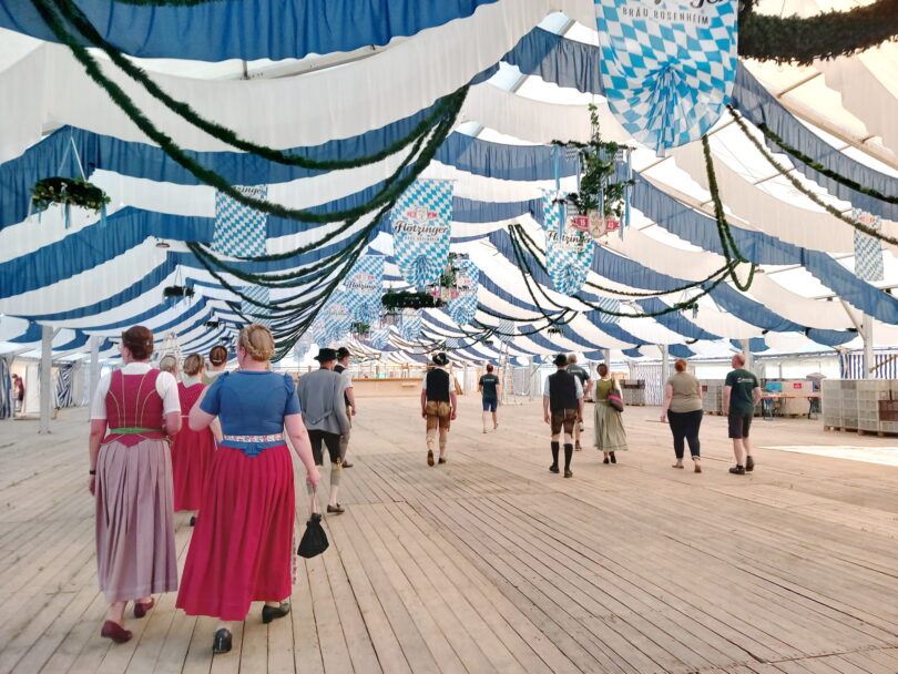Fotos: Theresa Fritzenwenger, Chiemgau-Alpenverband – Zeltbegehung in Hohenaschau von Gauausschuss und Festverein – am Donnerstag, 25. Juli startet das Gaufest mit dem Bieranstich.