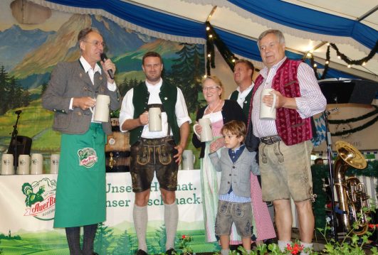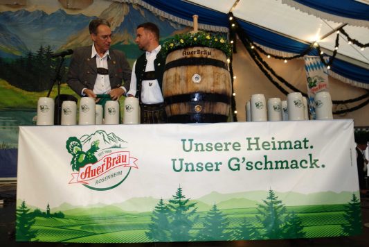 Ein Auftakt nach Maß und mit einigermaßen Wetterglück war der erste Tag der Festzelttage zum heurigen Aschauer Markt. Dem Einzug der Brauleute und Bedienungen, der Musikkapelle und Gebirgsschützen, der Feuerwehr und Ehrengäste folgte ein mustergültiger Bieranstich, den Bürgermeister Peter Solnar mit einem perfekten Schlag überraschend ruhig und trocken vornahm. Vom ersten Tag ein paar Bilder.