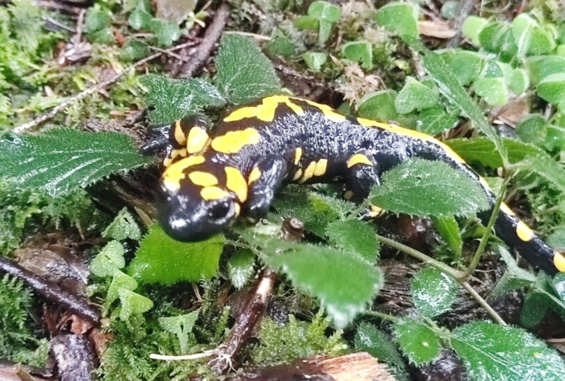 Hinweis: Feuersalamander sollte man wegen Giftigkeit nicht berühren