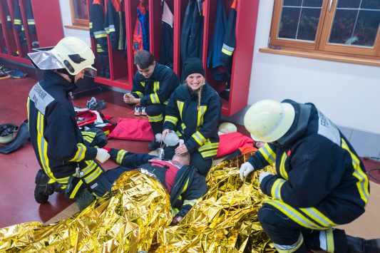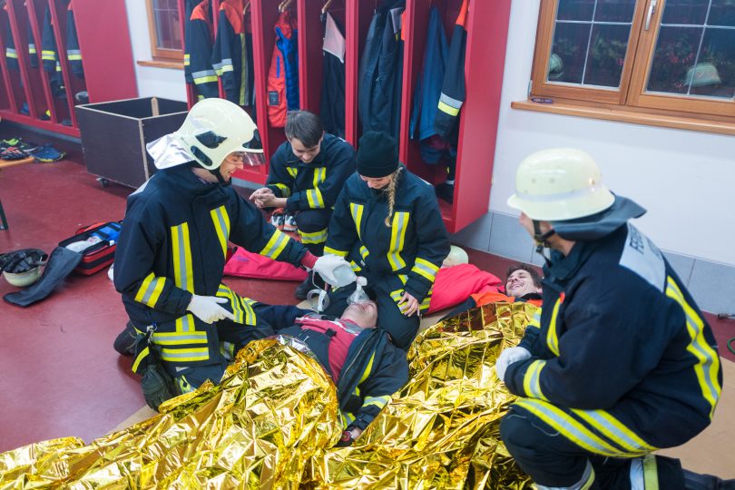 Ein Kellerbrand im Atzinger Vereinshaus mit starker Rauchentwicklung und drei vermissten Personen war der angenommene Fall für eine besondere Einsatzübung der Feuerwehr von Atzing. Diese war mit ihren Fahrzeugen 43/1 und 65/1 sowie mit insgesamt 25 Feuerwehrmännern und einer Feuerwehrfrau im Einsatz. Dank vier Atemschutzträgern wurden die drei vermisst gemeldeten Personen erfolgreich gerettet und durch ausgebildete Sanitäter aus den Reihen der Atzinger Feuerwehr-Aktiven betreut. Nach dem einstündigen Übungseinsatz wurde der Vereinshaus-Keller mit einem Hochdrucklüfter wieder rauchfrei gemacht und die Feuerwehrleute zogen sich zur Übungsanalyse mit Feuerwehrkommandant Paul Huber junior zurück.
