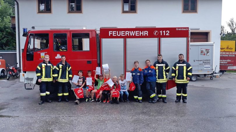 Wie sieht die Welt durch eine Atemschutzmaske aus? Wie können wir Löschwasser aus dem Bach entnehmen? All diese Fragen, sowie Fahrzeuge und Ausrüstung konnten acht Kindern beim diesjährigen Ferienprogramm der Grainbacher Feuerwehr praxisnah gezeigt werden.