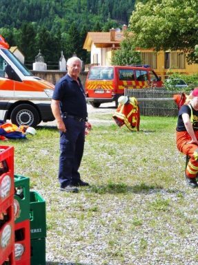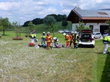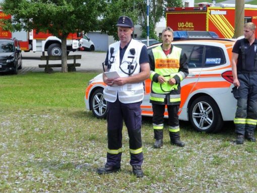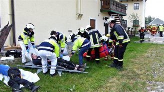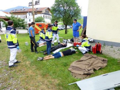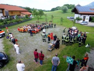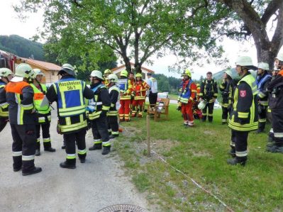120 Einsatzkräfte aus den Reihen von Feuerwehren und Rettungsambulanz übten die Rettung und anschließende Versorgung von 21 Personen aus dem Gebäude des Altenheims “St. Bartholomäus” in Rossholzen am Samerberg. Angenommen wurde ein Brand im zweiten Stockwerk aus. Wegen der zu erwartenden starken Rauchentwicklung mussten die Einsatzkräfte der Feuerwehr bei der Personenbergung mit schwerer Atemschutzausrüstung zu den Eingeschlossenen vordringen. Die zu rettenden Personen wurden zum Teil durch Jungfeuerwehrlern der örtlichen Feuerwehr simuliert. Nach der Bergung der jeweils Geretteten erfolgte anschließend die medizinische Versorgung durch die Sanitäts-Rettungsdienste, gestellt von der Ambulanz Rosenheim/Flintsbach. Die Einsatzübung erstreckte sich über eine Stunde von 14 bis 15 Uhr. Nach Übungsende erfolgte eine Nachbesprechung. Darin ging man auf die wichtigsten Punkte dieser Übung ein und wies auf den reibungslosen Ablauf während der Übung, sowie die gute Koordination mit den einzelnen, an der Übung beteiligten Einsatzgruppen hin. Alle an der Übung beteiligten Kräfte wurden zum Abschluss vom „Altenheim Roßholzen“ zu einer gemeinsamen Brotzeit unter freiem Himmel eingeladen.
