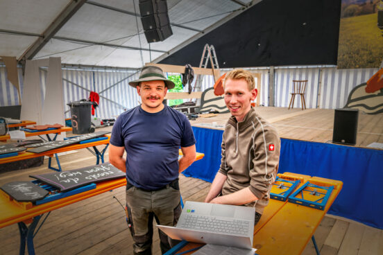 Beim Aufbau im großen Festzelt auf dem Veranstaltungsgelände sind die letzten Arbeiten in vollem Gange: Schilder werden angebracht, Stromleitungen verlegt, die Bühne bekommt den letzten Feinschliff, und auch an den Schänken laufen die Vorbereitungen auf Hochtouren. Festleiter Georg Staber, zweiter Kommandant Korbinian Schmitzberger und viele freiwillige Helferinnen und Helfer aus der Feuerwehr und Dorfgemeinschaft packen kräftig mit an. Die Atmosphäre ist geprägt von Teamgeist und Vorfreude – und die Details zeigen: Hier entsteht ein Fest mit Herz und Verstand.