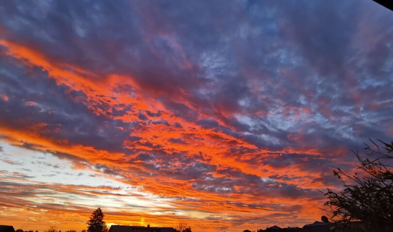 Einen feuerfarben-gefärbten Himmel mit der Vermutung, dass in der Nähe ein aktiver Vulkan mit seinen Farbtönen die Stimmungsbilder prägt konnten zum Wochenstart am Montagmorgen Priener und Chiemseer einfangen.
