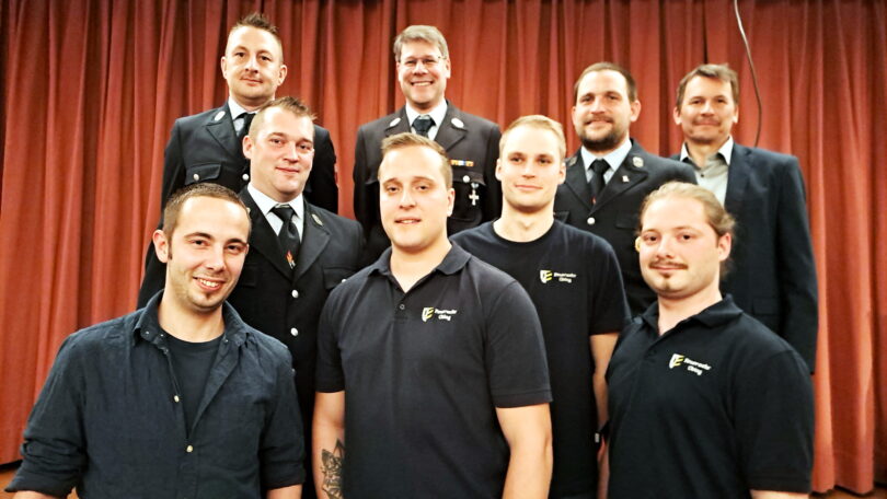Die neue Vorstandschaft der Freiwilligen Feuerwehr Obing stellt sich vor (vordere Reihe von links): Michael Rothmayer 2. Vorstand, Dominik Baumann 1. Vorstand, Korbinian Thurner Schriftführe (zweite Reihe von links) Christoph Maier 1.Fähnrich, Lukas Lademann 2. Fähnrich (dritte Reihe von links) Alexander Ullrich 1. Kommandant, Andreas Voderhuber 2. Kommandant, Max Hamm Kassier und Bürgermeister Sepp Huber