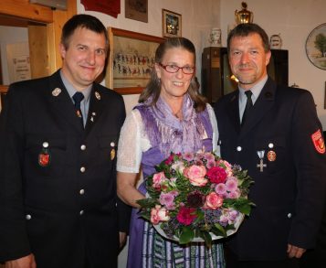 Michael Klein erhielt das silberne Feuerwehrehrenzeichen des Freistaats Bayern für 25 Jahre aktiven Feuerwehrdienst, unterschrieben vom bayerischen Innenminister Joachim Hermann aus der Hand von Bürgermeisterin Marianne Steindlmüller und Kreisbrandmeister Stefan Pfliegl. Bürgermeisterin Marianne Steindlmüller bedankte sich für den Einsatz der Feuerwehrleute: „Männer wie ihr, sind das Vorbild für unsere Nachwuchskräfte und für den Dienst am Nächsten unverzichtbar“. Mit einem großen Blumenstrauß verabschiedeten die Feuerwehrleute „ihre Bürgermeisterin und Chefin“, die sich bei den kommenden Wahlen nicht mehr zur Wahl stellen wird.