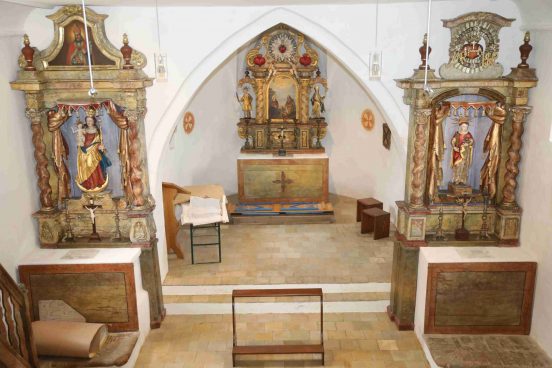 “Was lange währt, wird endlich gut”. Dieser Satz passt vortrefflich auf die Filialkirche Sankt Laurentius und Stephanus in Ebering, Holzlandgemeinde Steinkirchen zu, sagte die Verwaltungsleiterin Sandra Bachmeier bei der kürzlich stattgefundenen Kirchenführung. Die langjährigen Kirchen-Renovierungsarbeiten an dieser Eberinger Kirche gehen nun den Ende entgegen. Diese Renovierung hat eine beispielhaft lange Geschichte. Bereits in den 80er Jahren hat der damalige Pfarrer Josef Reindl in etlichen Briefen an das Erzbischöfliche Baureferat den destolaten Zustand der Kirche in Ebering angeprangert: “das Chordach der Eberinger Kirche ist an der Nordseite total eingebrochen. Die sofortige Reperatur ist angezeigt, da das Wasser ungehindert eindringen kann”. Zum undichten Dach kamen noch etliche Problemzonen hinzu. Die Feuchtigkeit war dabei der ärgste Feind. Trotzdem hat es noch viele Jahre gedauert, bis endlich richtig angepackt werden konnte. Das Ordinariat hat sich aufgrund der hohen Kostenschätzung von 780.000 Euro sehr lange geziert, die Maßnahme durchzuführen und durch das Warten explodierten die Kosten. Der Wendepunkt kam mit der Zusage des Landessamtes für Denkmalpflege, das vom Andreas Lenz, MdB angestoßen wurde, über den sogenannten Entschädigungsfonds einen Zuschuss in Höhe von 200.000 Euro zu bewilligen mit der Bedingung , dass die Arbeiten nicht länger hinausgezögert werden. Weitere Zuschusszusagen vom Bezirk Oberbayern, der Bayerischen Landesstiftung, der Holzlandgemeinde Steinkirchen und vom Landratsamt Erding folgten und im Jahr 2016 konnte endlich mit der Gesamtrenovierung begonnen werden. Seit 2016 wurde in der Filialkirche Ebering Sankt Laurentius und Stephanus in der Pfarrei Steinkirchen im Holzland, Landkreis Erding fleißig gearbeitet. Eines der ältesten Gebäude der Gegend mit einer der ältesten Emporen des gesamten süddeutschen Raumes wird aufwändig renoviert und restauriert und damit der Nachwelt erhalten. Die 700-jährige Geschichte des Gotteshauses kann man am Gebäude und an der Innenausstattung ablesen. Dieses Juwel im Erdinger Holzland schlummerte lange im Dornröschenschlaf. Erst mit der Renovierung rückte die Bedeutung dieses Bauwerkes wieder in den Focus der Experten. Das Ordinariat, das Landesamt für Denkmalpflege, die Kirchengemeinde und auch die politische Gemeinde Steinkirchen sind ganz besonders stolz auf dieses Kleinod. Aktuell erhalten Altäre, Skulpturen und Kanzel der kleinen Filialkirche in Ebering nun ihren ihren letzten Schliff. Der im Wesentlichen aus der Zeit um 1300 stammende Backsteinbau ist eines der ältesten erhaltenen Gebäude der Gegend. In ihrem Inneren birgt sie eine Ausstattung, an der – wie auch am Baukörper – die bis in die frühe Gotik zurückreichende Geschichte ablesbar geblieben ist. Auch dank ihres um 1680 gefertigten Hochaltars, den ins 18. Jahrhundert datierten Seitenaltären, der Kanzel aus dem 17. Jahrhundert und weiteren Einzelskulpturen und Gemälden aus unterschiedlichen Epochen – die älteste davon die an der Nordwand stehende Skulptur des Hl. Laurentius von 1450/60 – stellt die Kirche ein seltenes historisches, religionsgeschichtliches, kunsthistorisches, kunsttechnologisches und volkskundliches Zeugnis dar. Erst vor wenigen Wochen wurde die imposante Eingangstüre aus dem 16. Jahrhundert mit den eindrucksvollen Alterungsspuren der überstandenen Jahre wieder eingesetzt und das alte Kirchentürschloss wieder gangbar gemacht, ebenfalls ein Schritt auf dem Weg der Sanierung, Konservierung und Restaurierung der Kirche und ihrer Ausstattung. Dieser begann 2010 mit einer ersten Bestandsaufnahme von Gebäude und Ausstattung. Inzwischen sind Gebäudesanierung und Konservierung/Restaurierung der Fassaden und der Rauminnenflächen weitgehend abgeschlossen. Durch Dachschäden eingedrungene Nässe, Kondensfeuchte, Klimaschwankungen und Holzschädlinge hatten auch der Ausstattung stark zugesetzt. Holz und Farbschichten zeigten immense Schäden und besonders die Farbschichten auf den Altären waren zu Beginn der Gesamtmaßnahme akut gefährdet. Die Behandlung der Altäre, Kanzel und Skulpturen erfolgte in drei Phasen: nach einer ersten Sicherung und einer Begasung des Kirchenraumes gegen Holzschädlinge 2017 wurden in der zweiten Phase 2019-2020 Holz, Farb- und Goldschichten der Altäre und Skulpturen umfassend gefestigt und gereinigt. Seit Sommer 2020 war die letzte Phase im Gange – die zurückhaltende Restaurierung: Neben einer letzten Reinigung und Festigung der Farbschichten wurden zunächst die stark verbräunten Überzüge früherer Restaurierungen reduziert, fehlende Teilstücke bildhauerisch ergänzt und sehr tiefe Holz- und Farbfehlstellen gekittet. Mit der Retusche von optischen Störungen erfolgt derzeit der letzte Schritt der Arbeiten. Dabei werden nicht die zahlreichen Ausbrüche der Farb- und Goldschichten bis auf das Holz geschlossen. In den vergangenen Jahrhunderten sind etwa zehn Prozent der Farb- und Goldschichten verloren gegangen. Die erhaltenen Flächen sind deutlich gealtert. Daher ist es nicht das Ziel dieser letzten Maßnahme die Oberflächen ‚in neuem Glanz erstrahlen zu lassen’ und damit einen Zustand vorzugaukeln der im Anbetracht der langen Geschichte der Objekte völlig unlogisch wäre. Der gealterte Zustand wird durch die behutsame Retusche der Oberflächen gewürdigt und trotzdem ein gepflegtes Erscheinungsbild hergestellt. Das Belassen der zahlreichen Fehlstellen ist daher nicht als Mangel an finanziellem Einsatz zu sehen. Es ist vielmehr Teil des Gesamtkon-zeptes der Maßnahme, die durch die Würdigung des gealterten Zustandes, den hohen historischen Wert des Bestandes ehrt. Heute ist es innen und außen ein wahres Schmuckstück mit sehr langer und interessanter Historie geworden. Die Liste der ausgeführten Arbeiten ist lang. Von der nördlichen Friedhofsmauer über die Außenbeleuchtung zur Außenfassade und über das Dach reichten die Arbeiten rund um das Ki