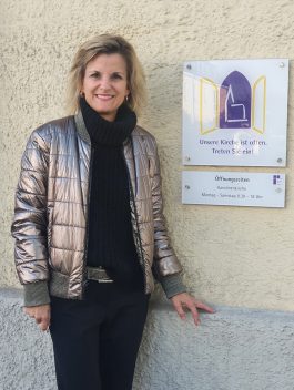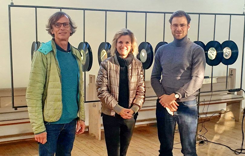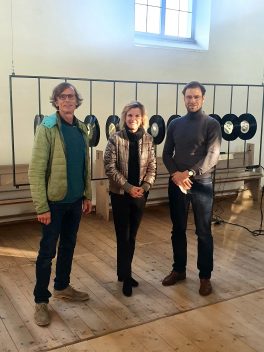 Bericht und Foto: Büro MdB Daniela Ludwig – Bundestagsabgeordnete Daniela Ludwig vor der Kirche Kirche_Großkarolinenfeld 3: v.l: Künstler Christian Wichmann, Bundestagsabgeordnete Daniela Ludwig, Pfarrer Dr. Richard Graupner