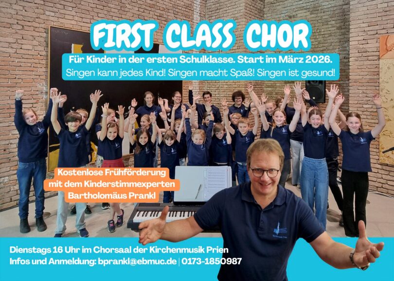 Mit einem neuen Chorkonzept startet der Priener Kinderstimmexperte Bartholomäus Prankl im März 2026 mit den diesjährigen Erstklässlern aus Prien und den Nachbargemeinden den „First Class Chor“. Das kostenfreie musikalische Förderkonzept ist einzigartig in der Region.