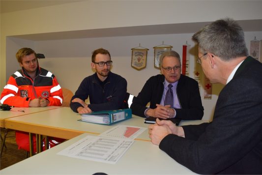 In Bayern ist die Bereitschaft sich ehrenamtlich zu engagieren besonders groß. Rund 47 Prozent der Menschen über 14 Jahre sind ehrenamtlich tätig. In der Marktgemeinde Bruckmühl sind es allein 21 Personen, die zum Beispiel ehrenamtlich als Ersthelfer, sogenannte First Responder (FR), für das Bayerische Rote Kreuz im Einsatz sind. Zu einem Gespräch über die aktuelle Einsatz- und Platzsituation hat der FR-Förderverein Bruckmühl nun den Landtagsabgeordneten Otto Lederer eingeladen. Hieran nahmen neben dem Vorsitzenden Reinhard Geigerseder auch der FR-Einsatzleiter Florian Kusterer und die Ersthelfer Maxi Weiß (Bereitschaftsleiter BRK Bruckmühl) und Markus Hemming (stellv. Bereitschaftsleiter) teil.