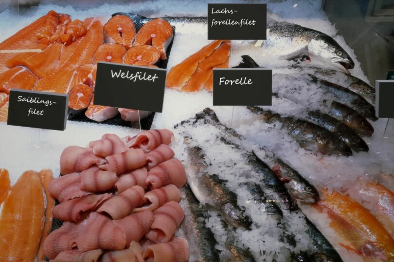 Fisch- und Fischereierzeugnisse einzukaufen, ist angesichts der riesigen Auswahl für den Verbraucher nicht so leicht. Deshalb müssen Händler Informationen zu Art- und Herkunftsinformationen bereitstellen, um Transparenz und Rückverfolgbarkeit von Fischereiprodukten innerhalb der kompletten Lieferkette zu gewährleisten. Im Rahmen des EU-Projekts „Umsetzung der gemeinsamen Fischereipolitik (GFP) – Fischetikettierung und Rückverfolgung“ ist das Institut für Ernährungswirtschaft und Märkte an der Landesanstalt für Landwirtschaft (LfL) zuständig für die Fischetikettierungsvorschriften und die Rückverfolgbarkeit von Fisch und Fischprodukten. Neben einer Broschüre zum Thema gibt es nun das LfL-Video „Fische richtig kennzeichnen“ mit allen Infos zur Fischetikettierung. Überwacht wird die korrekte Etikettierung in Bayern von Kontrolleuren der LfL. Sie prüfen in Fachgeschäften, Groß- und Supermärkten, ob alle Kennzeichnungselemente eingehalten werden. Diese gelten für frische, getrocknete und geräucherte Fisch- und Aquakulturerzeugnisse. Dazu gehören die Angabe der Handels- sowie der wissenschaftlichen Bezeichnung, die Produktionsmethode, das Fanggebiet, die Fanggerätekategorie und gegebenenfalls auch ein Auftau-Hinweis.