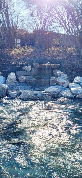 Neben dem Lebensraum für Fische wurde auch ein Unterschlupf für Wasseramseln geschaffen, der auch schon fleißig besucht wird. Die kleinen Vögel flitzen unter dem herabplätschernden Quellwasser in die neue Nagelfluhunterkunft.