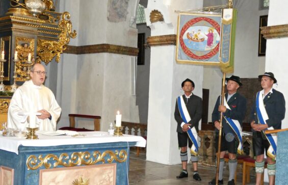 Im Beisein zahlreicher Ehrengäste hat die Fischereigenossenschaft Chiemsee ihren 126. Fischerjahrtag auf der Fraueninsel abgehalten. Das offizielle Programm begann traditionell mit dem Kirchenzug, der von der Blaskapelle Prien und den Fahnenabordnungen der Fischereigenossenschaft und des Anglerbundes Chiemsee angeführt wurde. „Es ist schön, dass sie ihren Fischerjahrtag immer mit einem Gottesdienst und dem Gedenken an die verstorbenen Mitglieder beginnen“, so Pfarrer Andreas Przybylski zu Beginn der Messe im Münster. Im festen Glauben an Gott würden die Fischer auch in Zukunft alle Herausforderungen und Schwierigkeiten meistern. In den Fürbitten baten die Fischer unter anderem um den Segen für ihre Arbeit und dafür, dass Gott den Menschen ein gutes Gespür für die Schöpfung und die Wunder der Natur gebe. Das Totengedenken fand wetterbedingt in der Kirche statt. 1. Vorsitzender Florian Kirchmeier verlas dabei die Namen der verstorbenen Chiemsee-Berufsfischer, die sich um die Fischerei und die Genossenschaft verdient gemacht hatten. Man gedachte auch den Förderern und Söhnen der hiesigen Fischerfamilien, die in den Weltkriegen starben. „Frieden und Freiheit sind keine Selbstverständlichkeiten, sondern sie sind wertvolle Güter, die wir täglich schützen und bewahren müssen“, mahnte Kirchmeier an.