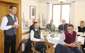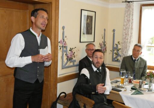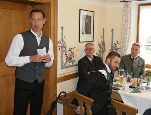 Foto 4 (mmü): Die Chef der Fischereigenossenschaft Chiemsee Florian Kirchmeier, Berufsfischer aus Seebruck, leitete beim 126. Fischerjahrtag auf der Fraueninsel die Versammlung im Gasthof „Zur Linde“ im Beisein zahlreicher Mitglieder und Ehrengäste.