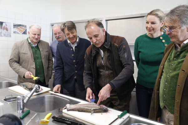 „Tradition trifft Innovation“ lautete der Titel des heutigen Fischverarbeitungskurses, zu dem die Bayerische Landesanstalt für Landwirtschaft (LfL) gemeinsam mit dem Landesfischereiverband Bayern (LFV) heute nach Starnberg geladen hatte. Im Lehrsaal des LfL-Instituts für Fischerei waren LfL-Präsident Stephan Sedlmayer, LFV-Präsident Axel Bartelt, Journalisten und Vertreter aus Verbänden, Wirtschaft und Politik.